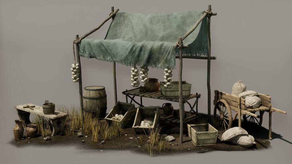 My scene after the detail modeling phase and Texture Paint first pass.