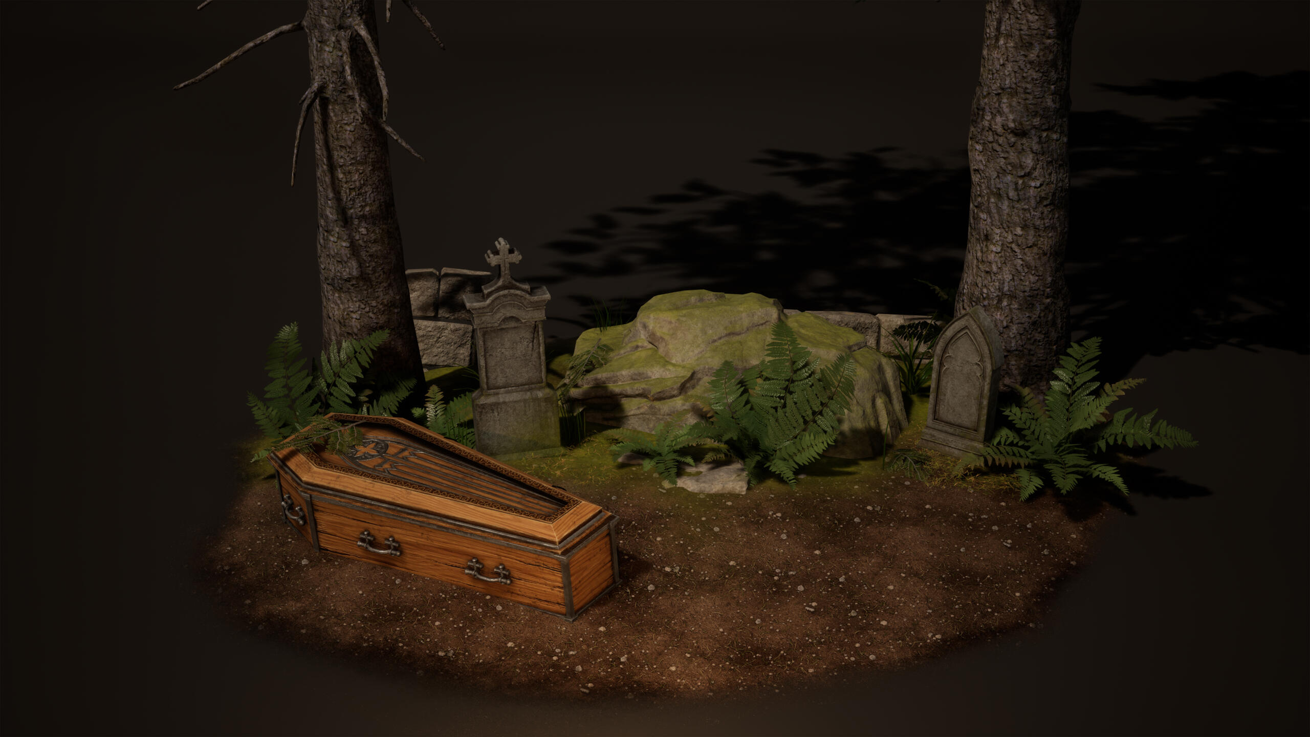 I enjoy the artistic side of game environments, such as creating high quality assets, compositions, and impactful scenes. A game environment holds the potential to tell a story and convey emotions without using a single word, which is super inspiring to me and a key part of developing environments for games. At the same time, I enjoy the technical challenges that come with making environments for games, including performance, optimization, and shader creation.