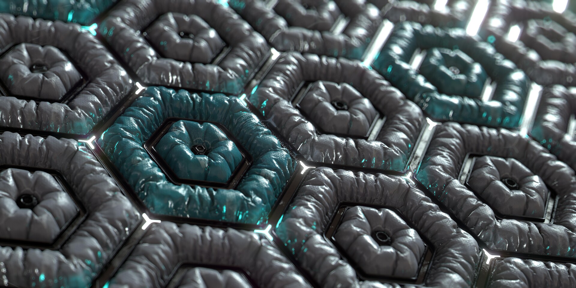 I created a curve-driven generator in Geometry Nodes that converted splines into meshes. A radial pattern was extruded along the path, and spikes were procedurally distributed along the circumference.