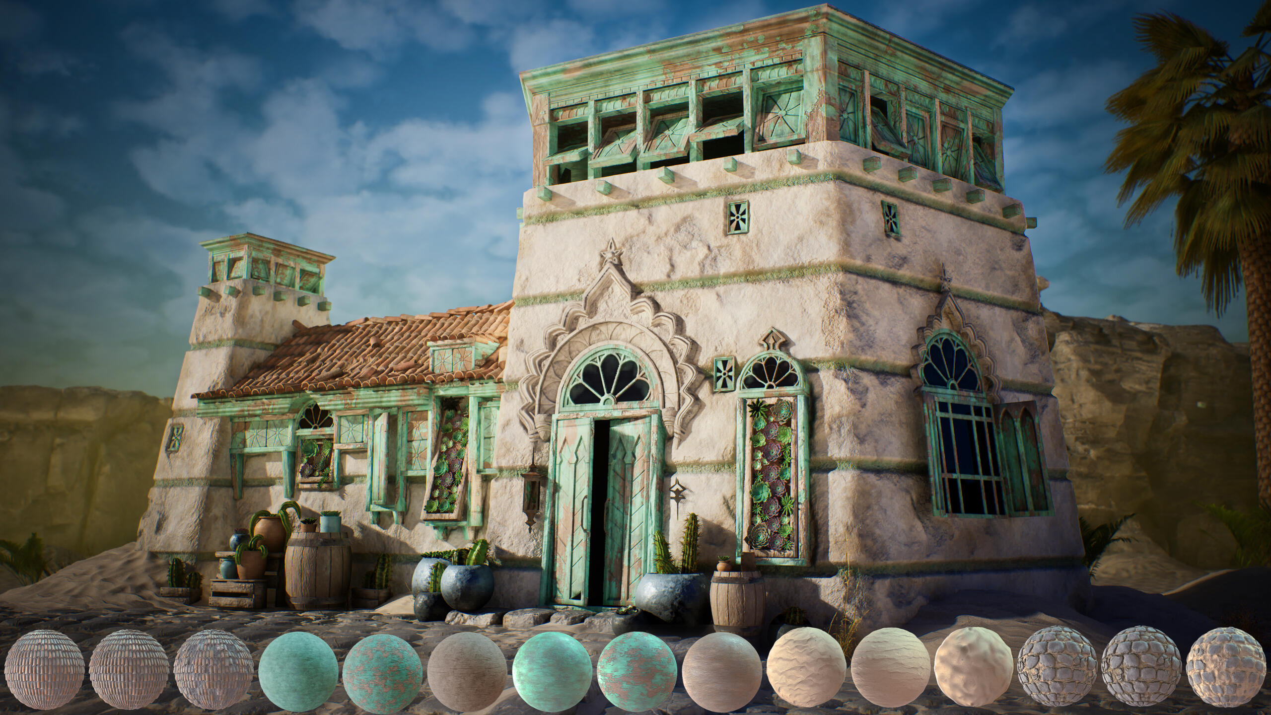 With this mentorship, I wanted to shift my thinking from hero material creation to production material design. Sunstone Villa became that turning point.