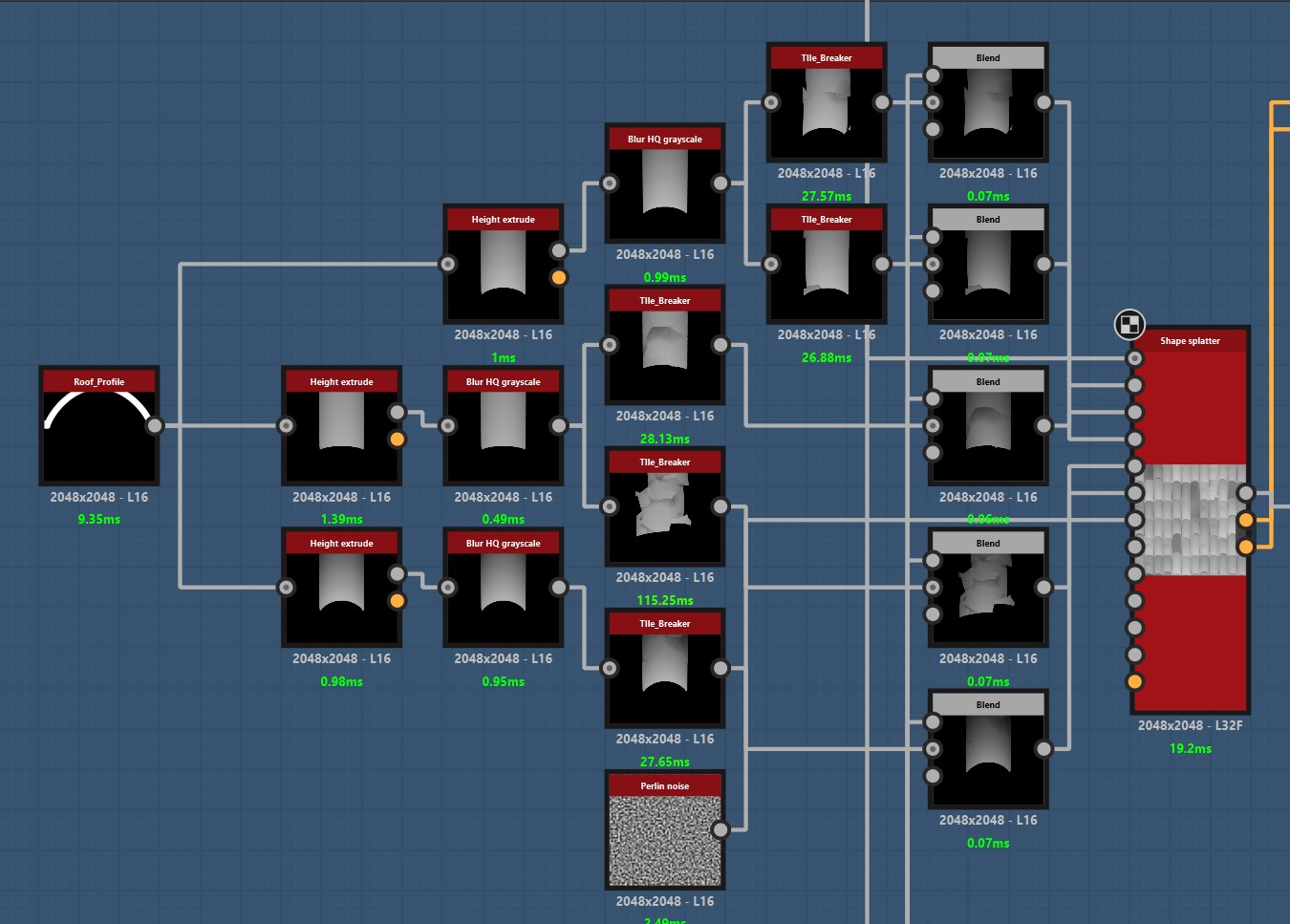- A custom tile breaker node controlling crack patterns and fragmentation