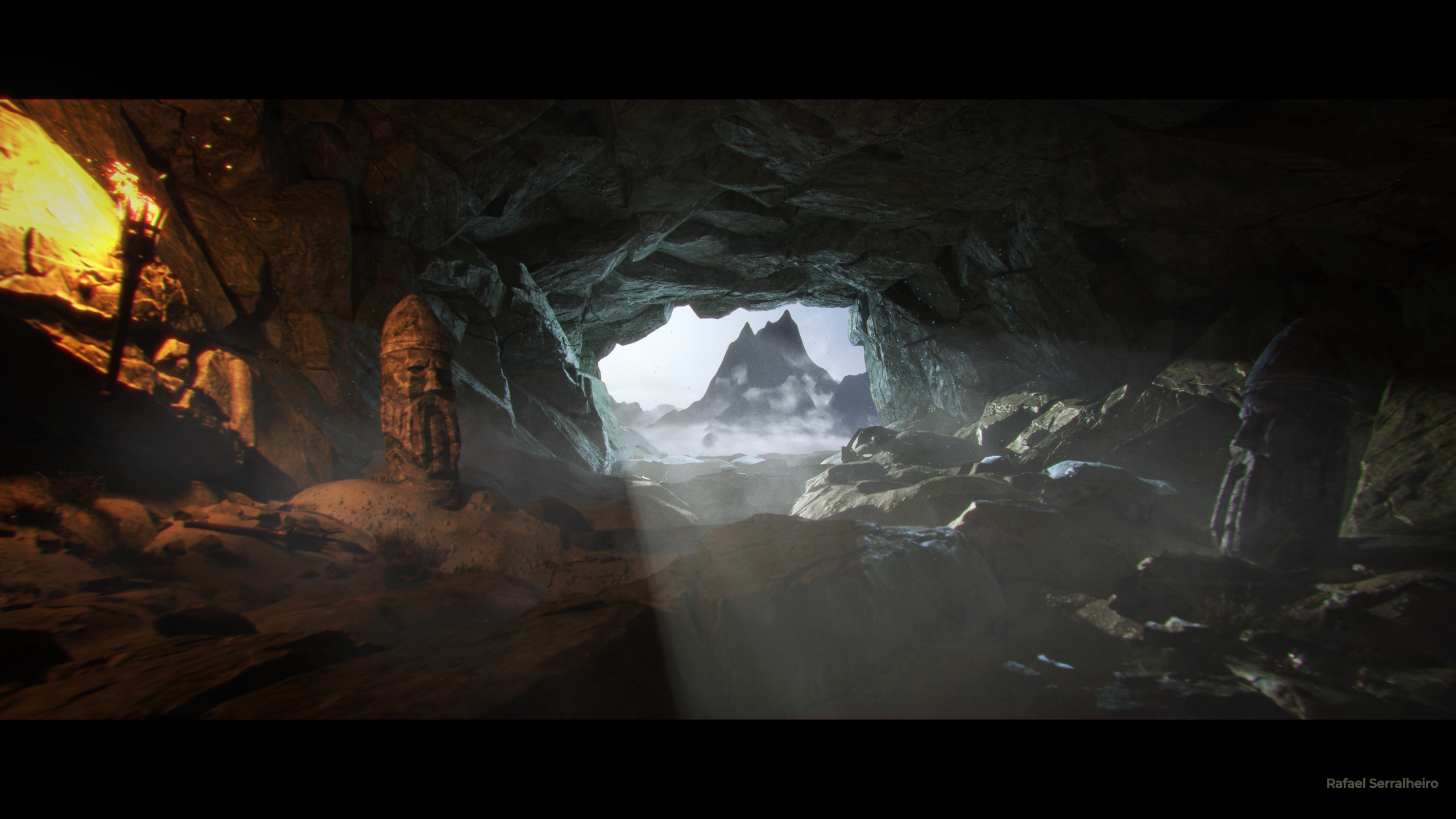 The hardest part was finding the right balance: keeping the viewer focused on the central frame, introducing a slight angle in the key light for shape and depth, and ensuring the cave stayed visible, but still dark enough to create contrast. Iteration, along with feedback from friends and colleagues, was essential in guiding the lighting to the right place.